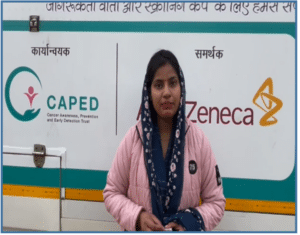 Hemlata, a 27-year-old housewife from Jonapur Phadi, took a life-changing step when she attended a Cervical, Breast, and Oral Cancer Screening Camp for the first time. This experience not only transformed her perspective on health but also turned her into a passionate advocate for cancer awareness in her community.
